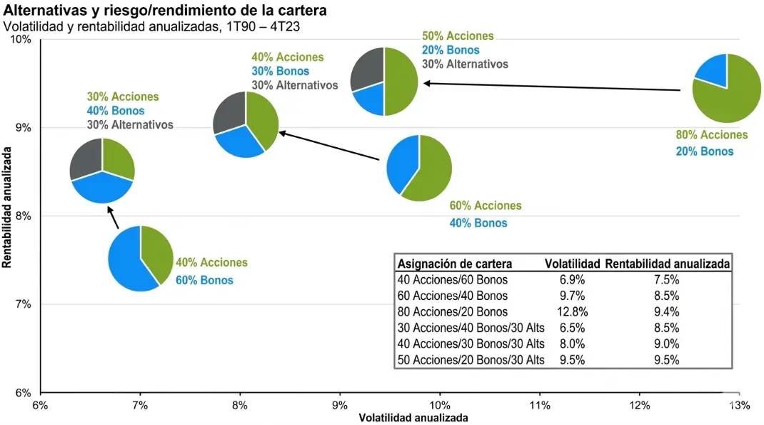 Las inversiones alternativas pueden aportar una dimensión adicional en la construcción de carteras al ofrecer: